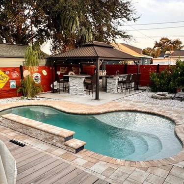 This 2-bedroom, 1-bathroom home features a backyard oasis complete with outdoor kitchen and pool with sunbathing ledge. The home includes a washer and dryer and is steps away from The Aphasia Center and is a convenient place to stay for clients without mobility needs who are attending an intensive aphasia treatment program.